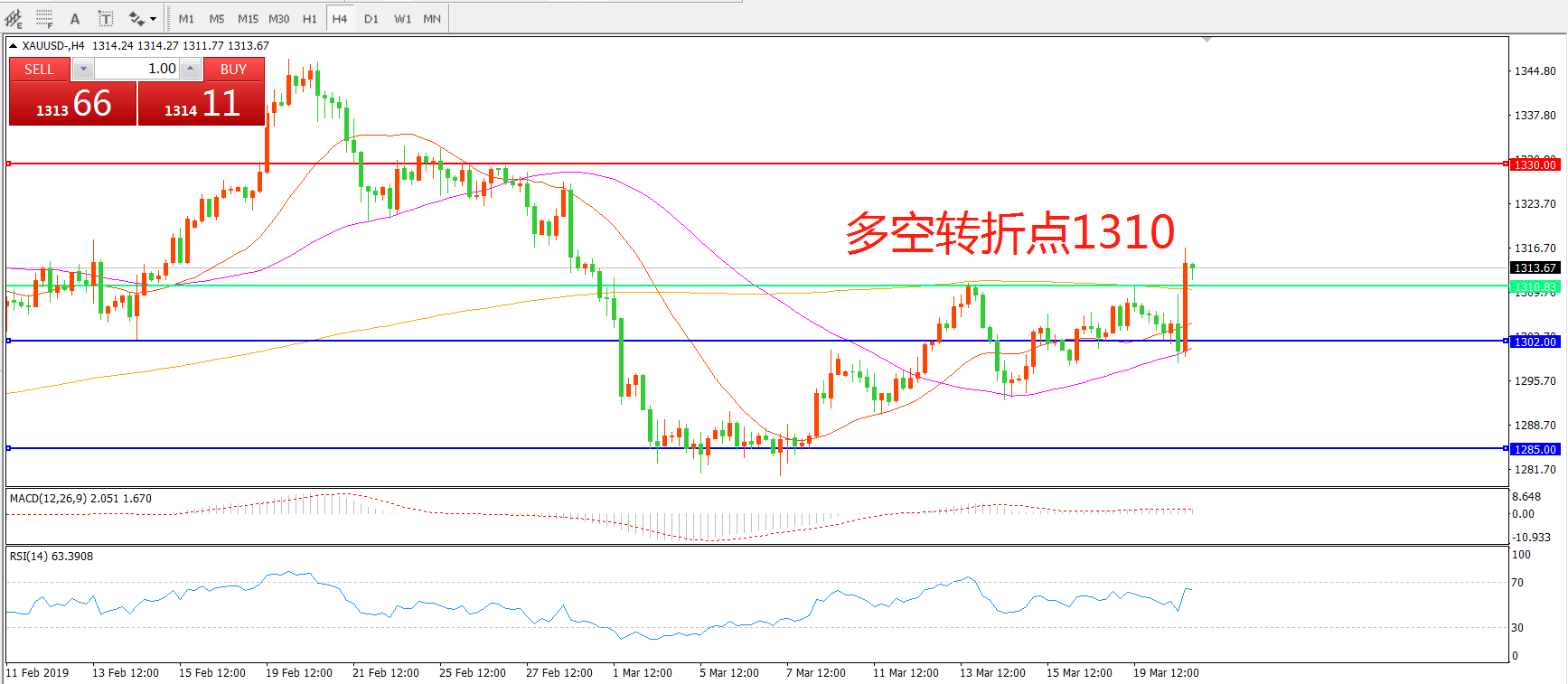 交易策略:在1310.00之上看涨,目标1316.00   1330.00