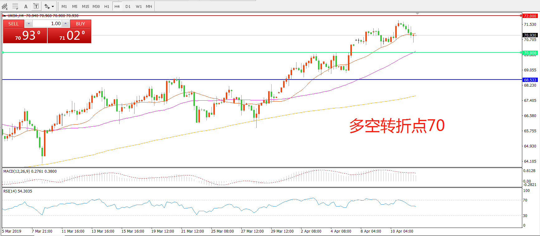 交易策略:在70.00之上看涨,目标72.00    74.50