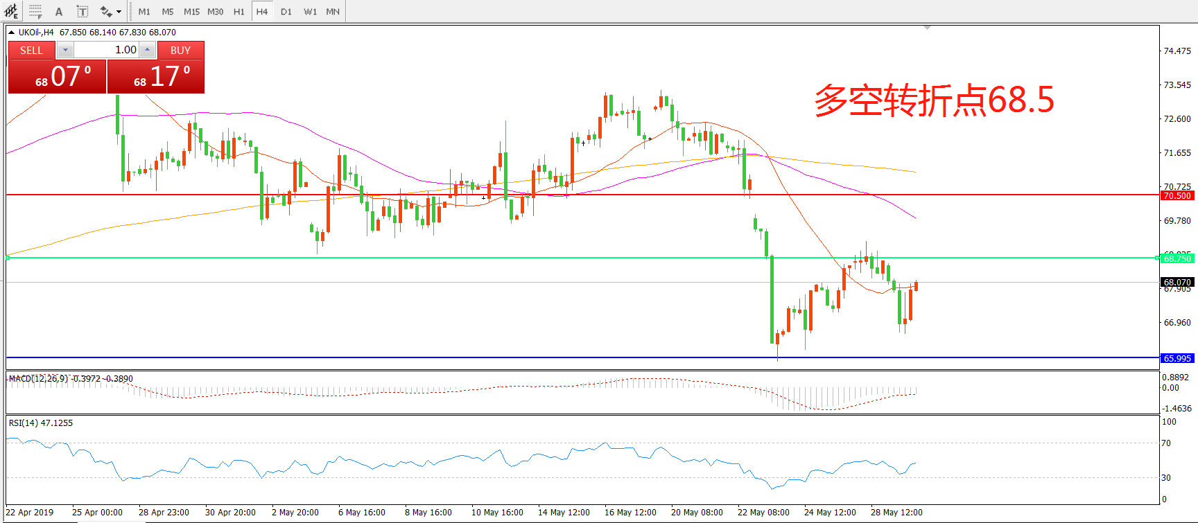 交易策略: 在68.50之下看跌,目标66.00 64.50