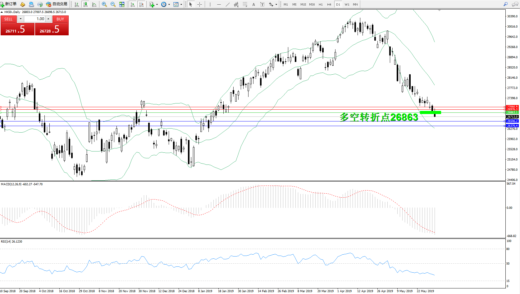 中国内地股市早盘冲高回落,午后维持震荡格局。截至收盘,上证综指跌0.24%,收于2898.70点,周线涨1.60%,月线跌5.84%;香港恒生指数震荡走低,截至收盘跌0.79%,报26901.09点。财政部网站,国务院关税税则委员会05月13日决定,自2019年6月1日0时(即午夜)起,对原产于美国的部分进口商品提高加征关税税率。中国5月制造业再度收缩,官方制造业PMI跌破枯荣线,主要由于订单数量减少,出口订单下降尤为严重。5月份,中国制造业PMI由4月的50.1降至49.4,回落0.7点,不及分析人士预期的49.9。非制造业PMI持稳,报54.3,符合预期。本周,中国央行累计开展5300亿元逆回购操作,因本周有1000亿元逆回购到期,本周实现净投放4300亿元。