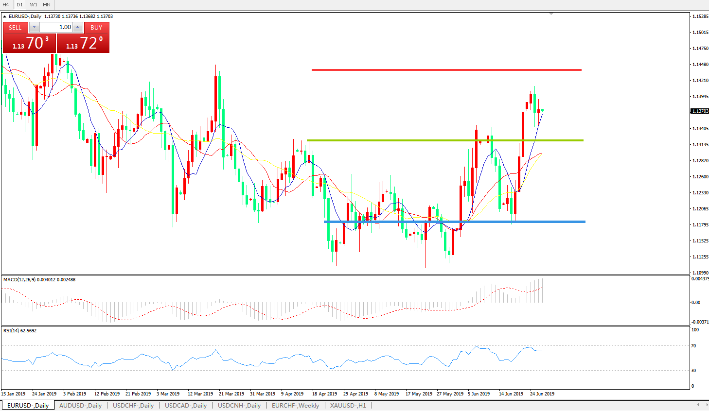 技术面简析:日图均线呈有序多头排列,汇价上攻后高位横盘整理MACD在0轴上方运行且动能有进一步放量迹象,RSI触及超卖区域后开始走缓,预计汇价短期窄幅整理修正后将进一步上行。