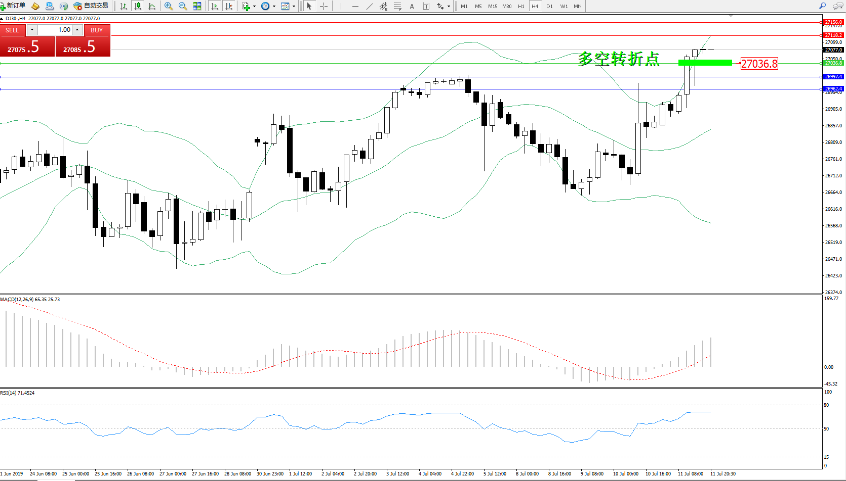 交易策略:27036上方看涨,目标27118、27156
