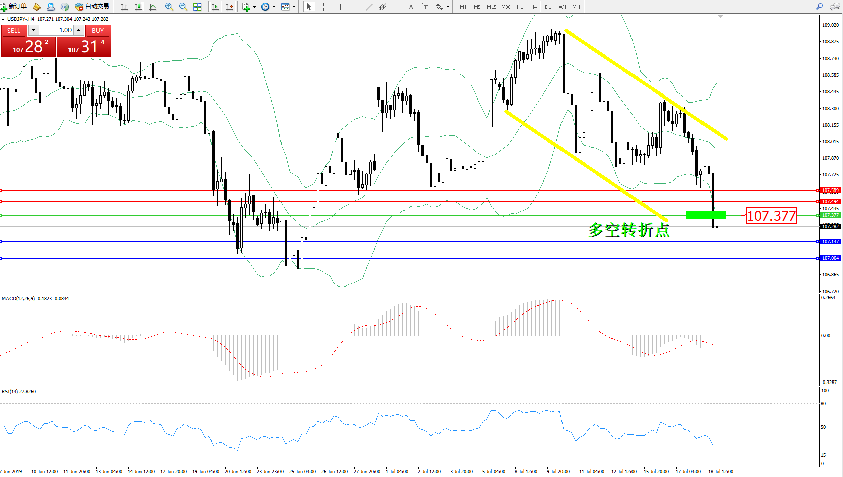美日盘中触及两周新低107.2附近,因市场风险情绪自隔夜以来持续升温,推动美元指数回落,资金也重新流向避险资产。但随后有所反弹,美国数据显示经济仍强劲。但同时,在G7财长会议上各国官员表达了对经济的悲观预期后,投资者也因而对全球经济前景产生了更多顾虑,汇市资金重新流入日元,美元兑日元形成了新的下行趋势。