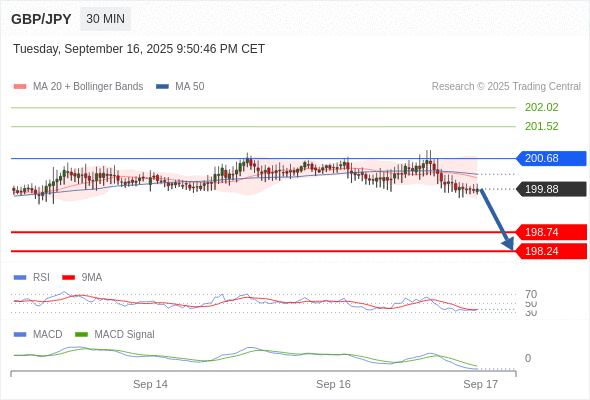 交易策略:看跌,在 200.68 之下。