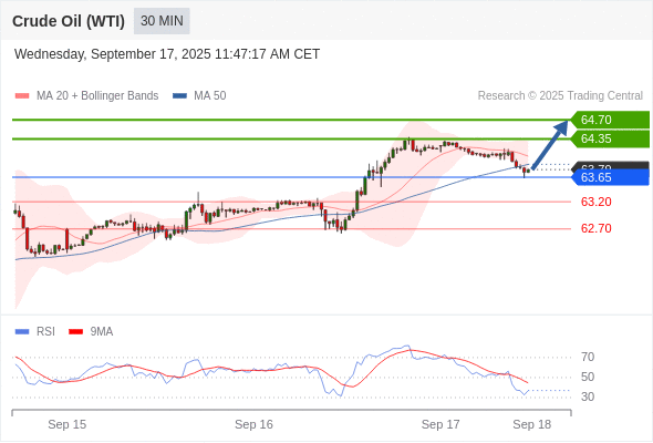 在 63.65 之上,看涨,目标价位为 64.35 ,然后为 64.70 。