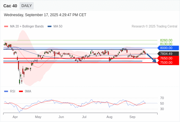 在 8000.00 之下,看跌,目标价位为 7650.00 ,然后为 7500.00 。
