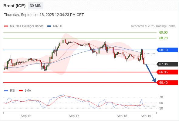 交易策略: 在 68.10 之下,看跌,目标价位为 66.95 ,然后为 66.40 。