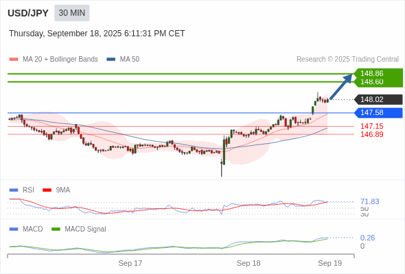 美元/日元 当日内 : 看涨,当 147.58 为支撑位。