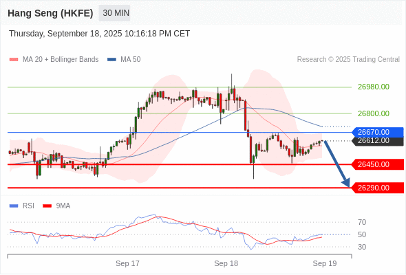 在 26670.00 之下,看跌,目标价位为 26450.00 ,然后为 26290.00 。