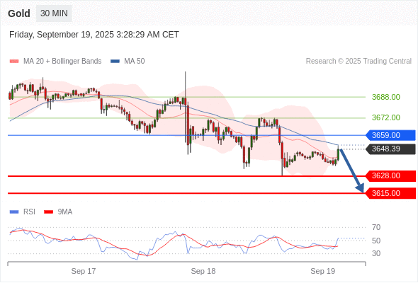 黄金现货 当日内: 短期关键阻力位在3659.00。