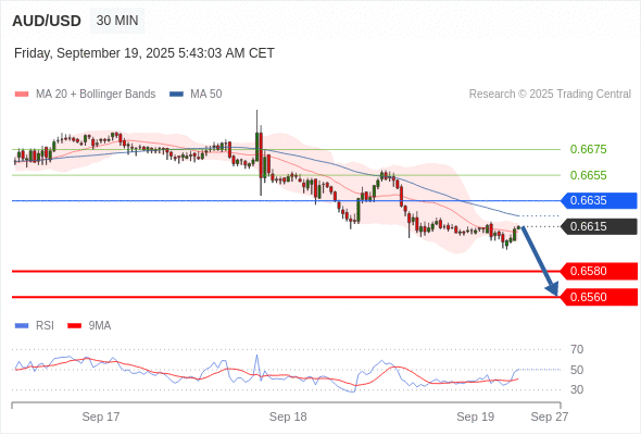 交易策略: 在 0.6635 之下,看跌,目标价位为 0.6580 ,然后为 0.6560 。