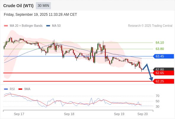 在 63.45 之下,看跌,目标价位为 62.65 ,然后为 62.25 。