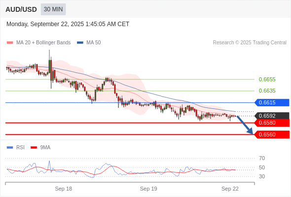 在 0.6615 之下,看跌,目标价位为 0.6580 ,然后为 0.6560 。
