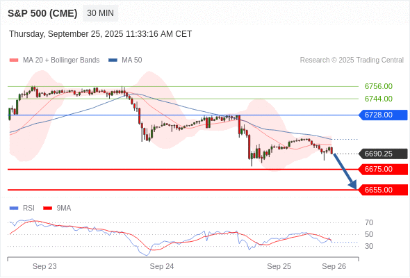 在 6728.00 之下,看跌,目标价位为 6675.00 ,然后为 6655.00 。