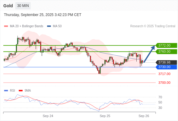 在 3730.00 之上,看涨,目标价位为 3760.00 ,然后为 3772.00 。