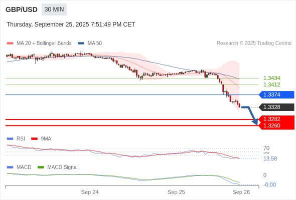 英镑/美元 当日内 : RSI是超卖的