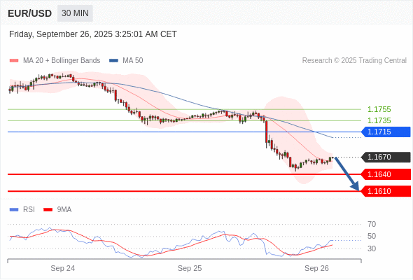 在 1.1715 之下,看跌,目标价位为 1.1640 ,然后为 1.1610 。