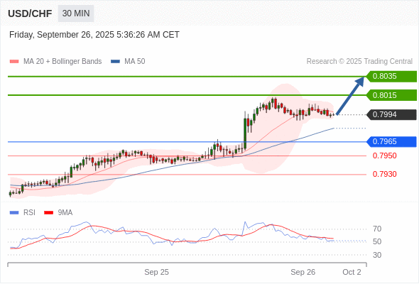 在 0.7965 之上,看涨,目标价位为 0.8015 ,然后为 0.8035 。