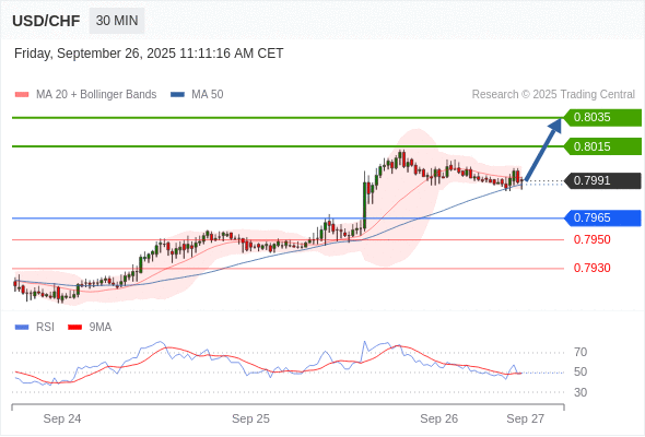 在 0.7965 之上,看涨,目标价位为 0.8015 ,然后为 0.8035 。