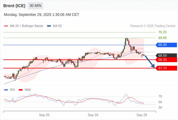 在 69.35 之下,看跌,目标价位为 68.30 ,然后为 67.70 。