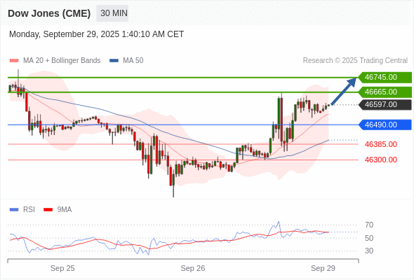 在 46490.00 之上,看涨,目标价位为 46665.00 ,然后为 46745.00 。