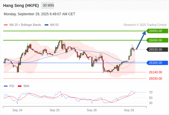 交易策略: 在 26300.00 之上,看涨,目标价位为 26690.00 ,然后为 26850.00 。