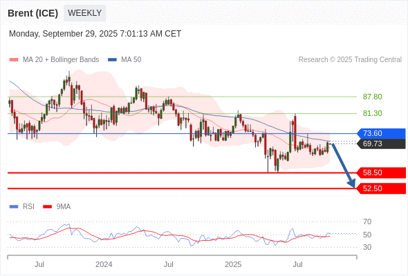 在 73.60 之下,看跌,目标价位为 58.50 ,然后为 52.50 。