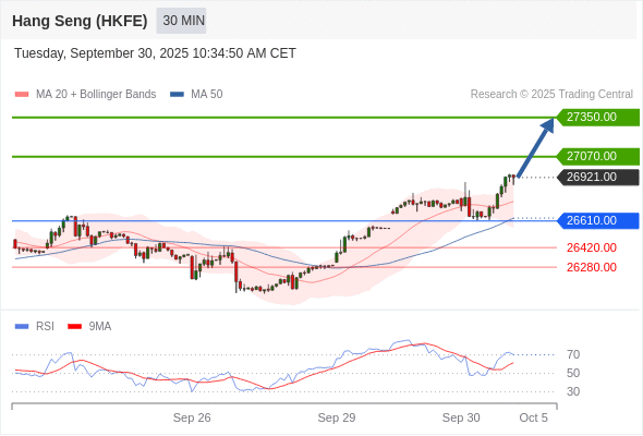 交易策略: 在 26610.00 之上,看涨,目标价位为 27070.00 ,然后为 27350.00 。