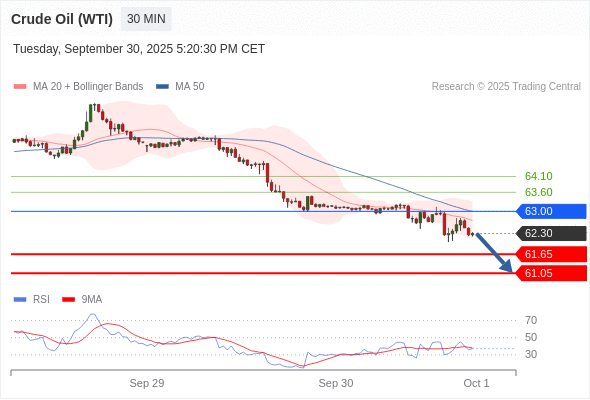 在 63.00 之下,看跌,目标价位为 61.65 ,然后为 61.05 。
