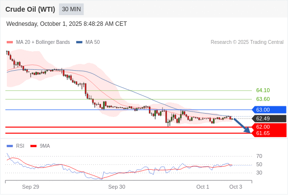 在 63.00 之下,看跌,目标价位为 62.00 ,然后为 61.65 。