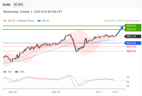 在 3834.00 之上,看涨,目标价位为 3890.00 ,然后为 3905.00 。
