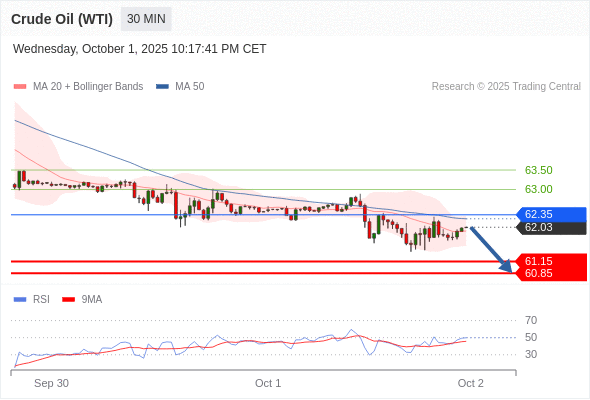 在 62.35 之下,看跌,目标价位为 61.15 ,然后为 60.85 。