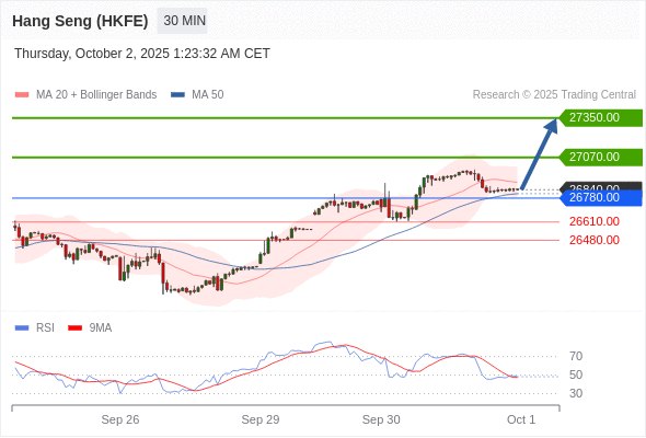 香港恒生指数期货 当日内: 期待27070.00。