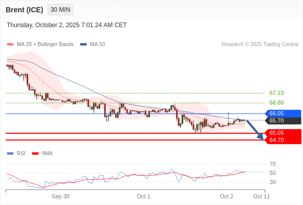 在 66.05 之下,看跌,目标价位为 65.05 ,然后为 64.70 。