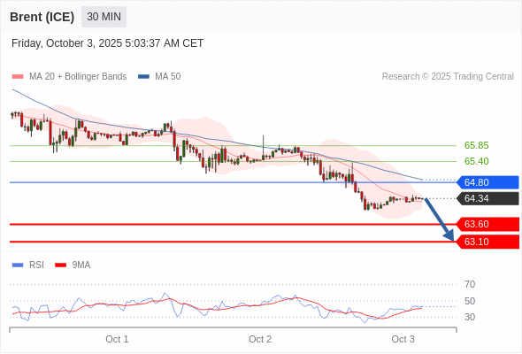 在 64.80 之下,看跌,目标价位为 63.60 ,然后为 63.10 。
