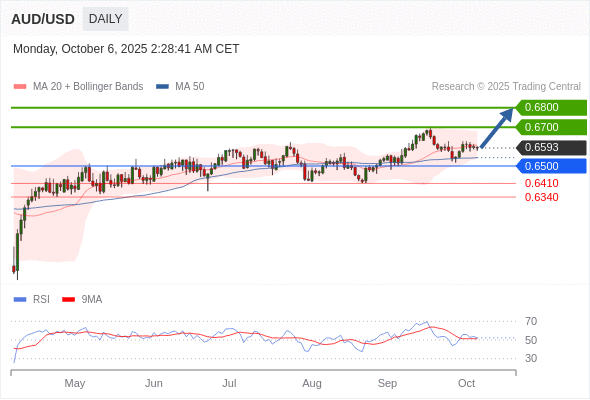 在 0.6500 之上,看涨,目标价位为 0.6700 ,然后为 0.6800 。