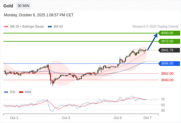 在 3896.00 之上,看涨,目标价位为 3972.00 ,然后为 4000.00 。