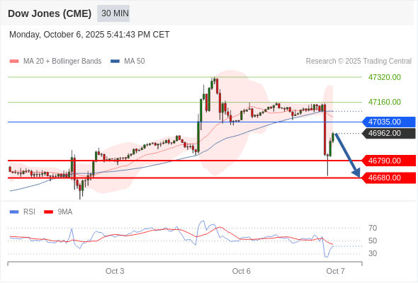 在 47035.00 之下,看跌,目标价位为 46790.00 ,然后为 46680.00 。