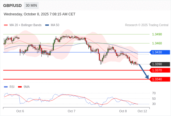 在 1.3430 之下,看跌,目标价位为 1.3370 ,然后为 1.3340 。