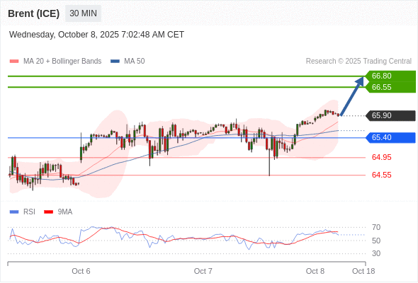 在 65.40 之上,看涨,目标价位为 66.55 ,然后为 66.80 。
