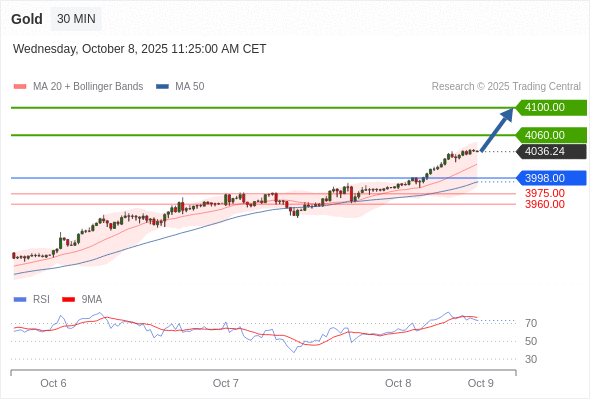 在 3998.00 之上,看涨,目标价位为 4060.00 ,然后为 4100.00 。