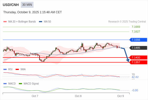 美元/人民币 当日内 : 看跌,在 7.1556 之下。