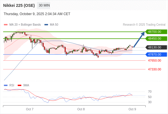 在 47870.00 之上,看涨,目标价位为 48450.00 ,然后为 48700.00 。