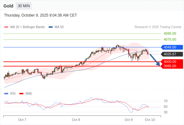 黄金现货 当日内: 短期关键阻力位在4049.00。