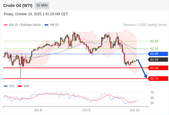 在 61.85 之下,看跌,目标价位为 61.20 ,然后为 60.70 。