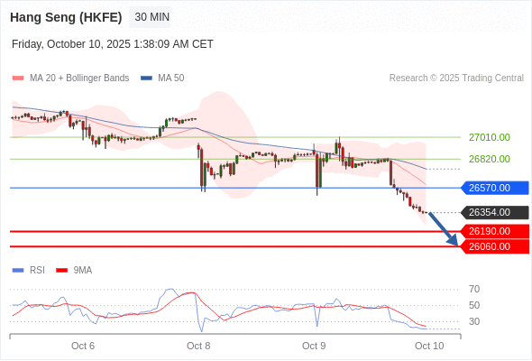 在 26570.00 之下,看跌,目标价位为 26190.00 ,然后为 26060.00 。