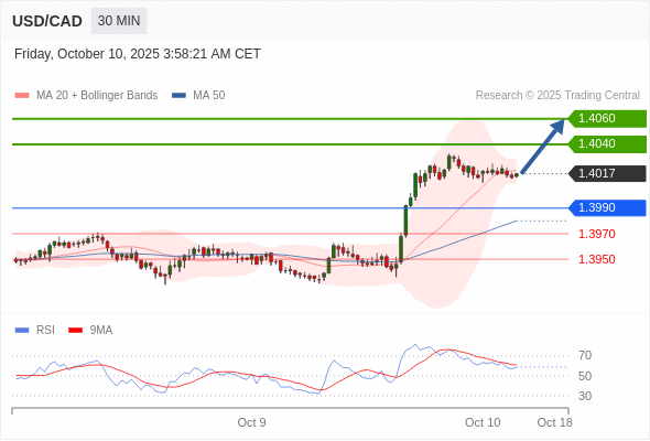 在 1.3990 之上,看涨,目标价位为 1.4040 ,然后为 1.4060 。