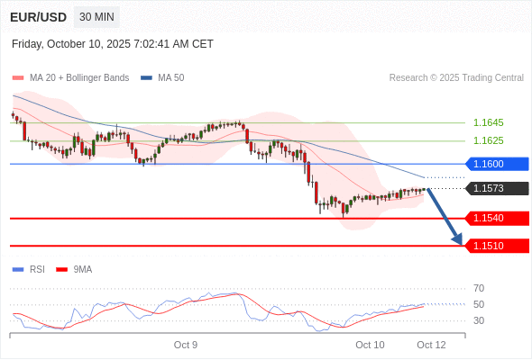 交易策略: 在 1.1600 之下,看跌,目标价位为 1.1540 ,然后为 1.1510 。