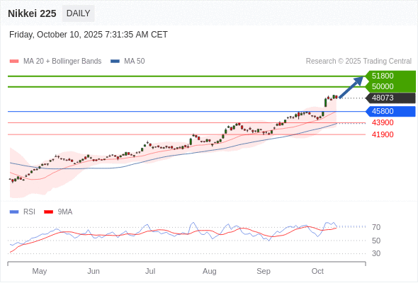 在 45800 之上,看涨,目标价位为 50000 ,然后为 51800 。