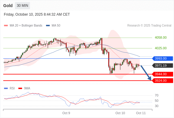 在 3993.00 之下,看跌,目标价位为 3944.00 ,然后为 3924.00 。